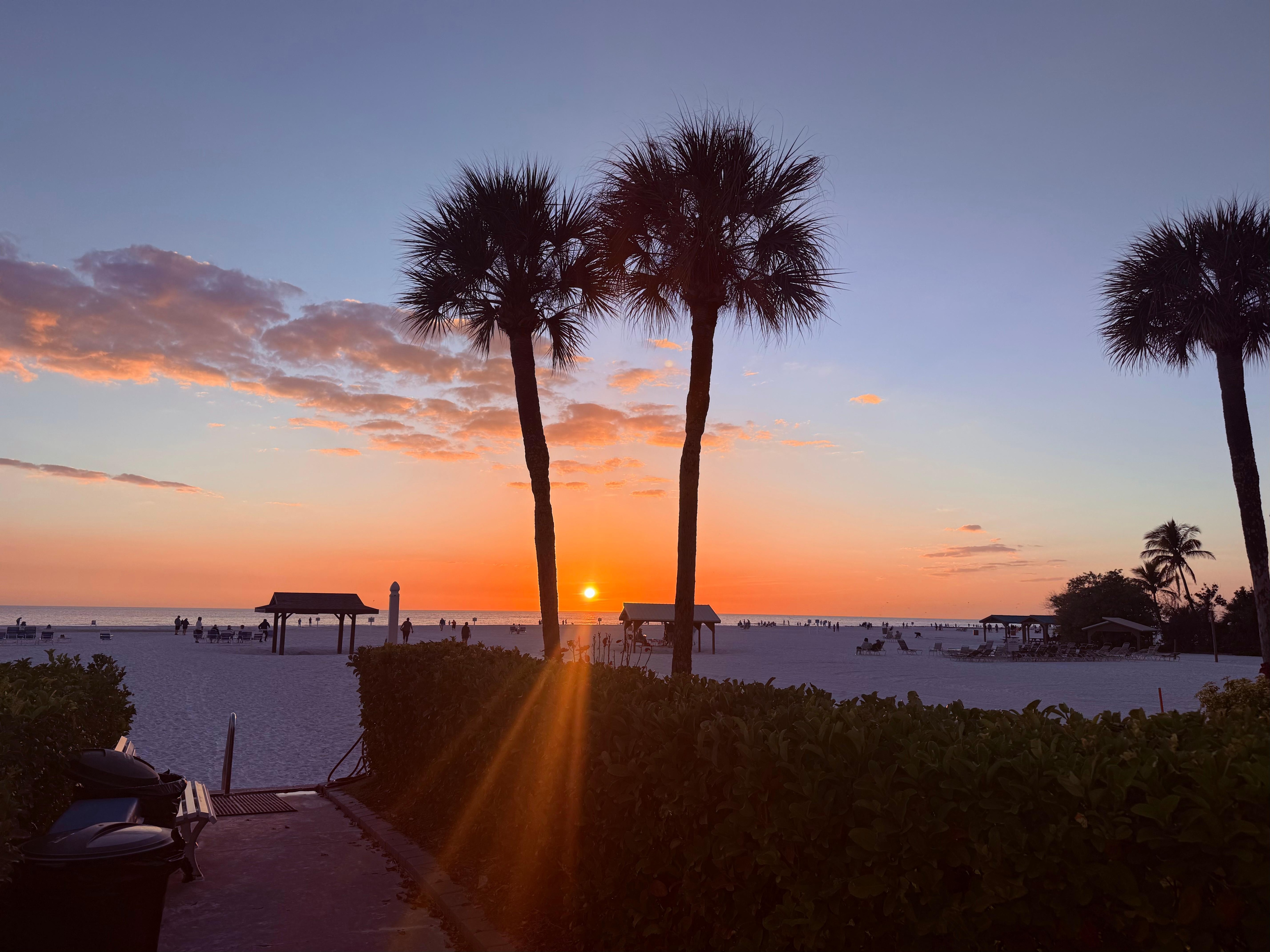 Location of this unit directly on the most beautiful white sand beach was phenomenal for our family of 4 with 2 kids under 13. Amazing sunsets from the back screened in lanai, where we enjoyed dinner at table for 4 and beautiful area in back yard with lounge chairs and palm trees! Large heated pool is a few min walk away also unbeatable!! Shuffleboard and ping pong table near pool were fun! Kitchen and bathroom are tiny but the views and location on beach make up for it. Plenty of beach towels and beach toys! Gated community was all very friendly and safe. Trolley #77 stops in front and only a 5-10m ride to ice cream and restaurants. We arrived early with luggage and were able to drop it off and go to beach before checkin.