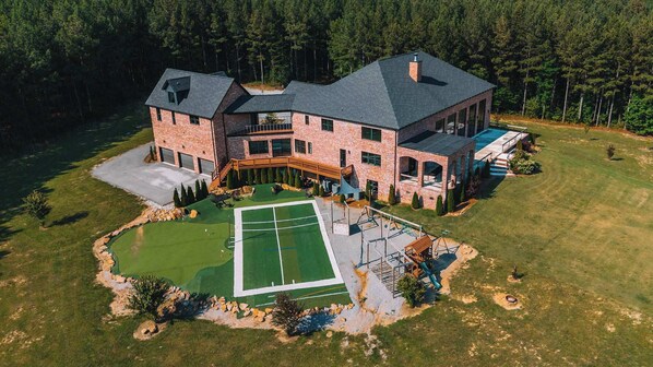 This singular Signal Mountain property on Nearfield Rd offers a total of 40+ acres with bucolic rural mountain views. This home is the perfect home to entertain friends and family. Quiet, private luxury. The interior features soaring vaulted ceilings, an open floor plan, and so much natural light. The chef's kitchen flows beautifully from the living space and features Thermador appliances. Boasting 8,770 sq. ft. of living area with 9 bedrooms, 7 bathrooms, and additional sleeping areas this home is perfect for your large gathering or special event space. Sleeps 26 comfortably in beds. The property also has a hot tub with a large door that can be opened if you want to enjoy the fresh air as you relax! Planning a wedding or special event? Contact us today for more information.