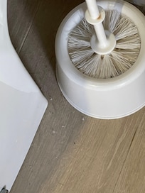Das Zimmer; aufgequollene Türen und Spanplatten. Hinter der Klobürste wird einfach nicht gewischt, ich erspare mir die Beschreibung.