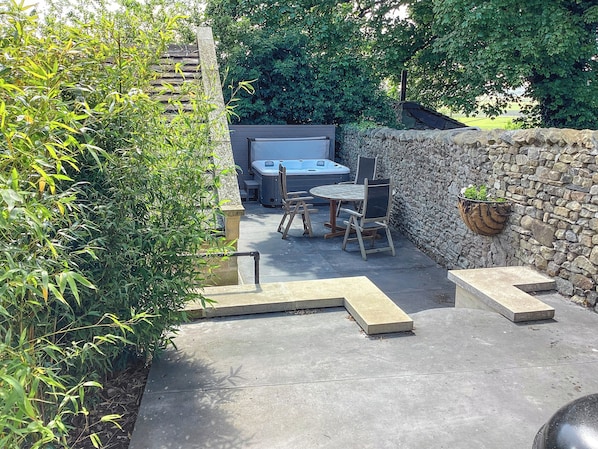 Shower Room: Cubicle Shower, Heated Towel Rail, Toilet. Gas central heating, electricity, bed linen and towels included. Travel cot.. Back garden with patio, garden furniture and BBQ. Hot tub for 4 (private). Bike store. Private parking for 1 car. No smoking.. Cromwell House is a modern and stylish first floor apartment located in the beautiful little village of Long Preston just outside the market town of Settle. The property built in 2021 has been a long-term project by the owners who have taken their time and given it the love and attention it deserves with no expense spared. The living area is open plan which presents a well-equipped, well presented kitchen, a delightful sitting area with a comfy sofa and large smart TV, this also boasts a table and four chairs making sure you have a place to sit and have breakfast at, so you are fully energised for another day of adventure.