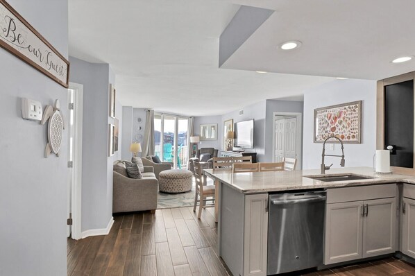 Welcome to your dream beach getaway! This stunning oceanfront condo boasts 2 bedrooms and 2 bathrooms, offering a perfect coastal escape with breathtaking views of the endless ocean waves. As you step inside, the spacious living area invites you to relax and soak in the beauty of your surroundings. The fully stocked kitchen, complete with sleek stainless steel appliances, inspires culinary creativity while providing an unforgettable backdrop. Retreat to the King-size Master bedroom, adorned with charming beach decor that promises comfort and relaxation, along with an en-suite bathroom for added convenience. The second bedroom is designed for versatility, featuring a Full-size bed and a Twin over Twin bunk bed, making it the ideal space for family or friends to unwind. A guest bathroom is located conveniently across the hall, with a washer and dryer for your convenience. After a day filled with seaside adventures, enjoy panoramic views from your private balcony — the perfect spot to watch birds glide by as you savor the tranquility of beachside living. Discover your coastal ticket to paradise at St. Regis 1102, where unforgettable memories await!
