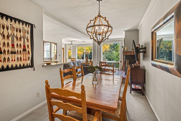 This slope-side condo offers comfort and convenience for outdoor enthusiasts! Enjoy mountain views from every room, an in-unit washer and dryer, and comfortable furnishings. The fully equipped kitchen features granite countertops and stainless steel appliances; guests can enjoy a meal at the breakfast bar, dining room table, or sitting area adjacent to the living room. The primary bedroom features a newly remodeled bathroom inclusive of a steam shower. Guests will also enjoy a gas grill located on the outdoor patio.