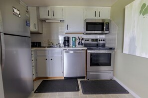 Wake up refreshed each morning in the queen-sized bed located in the bedroom with bunk beds, or enjoy the sleeper sofa for additional sleeping capacity in the living room. The bathroom is conveniently located next to the bedroom.