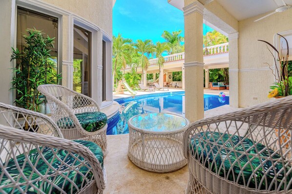 Get ready to relax in this 5-bedroom premium party house in Perla Marina by the beach. This superb property comes equipped with a bar, outdoor kitchen, tons of seating areas, AC, WiFi, huge backyard, 2 car garage and more. Book now and enjoy everything this house has to offer.