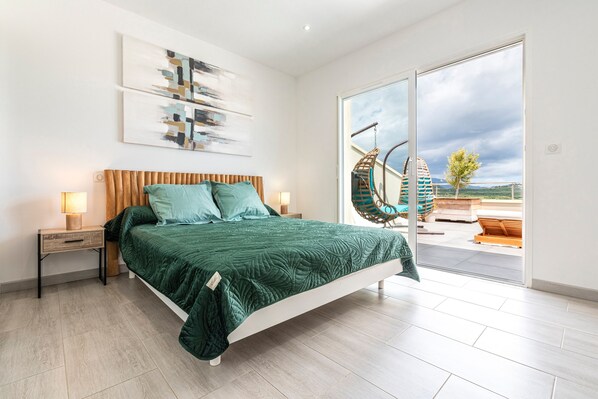 The Cocoonr/Book&Pay agency offers this charming, fully air-conditioned, single-storey house for rent in Sotta, with mountain views, a swimming pool, a jacuzzi, a surface area of 156 m² and accommodation for up to 8 guests. It comprises a lovely 54 m² living room, an open-plan fitted kitchen, three beautiful bedrooms, three bathrooms and a garden of around 600 m². Wi-Fi (fibre optic), sheets and towels included. We look forward to welcoming you!