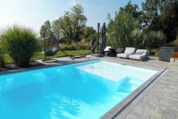 Der saisonal geöffnete Außenpool ist vom 01. April bis 30. September geöffnet