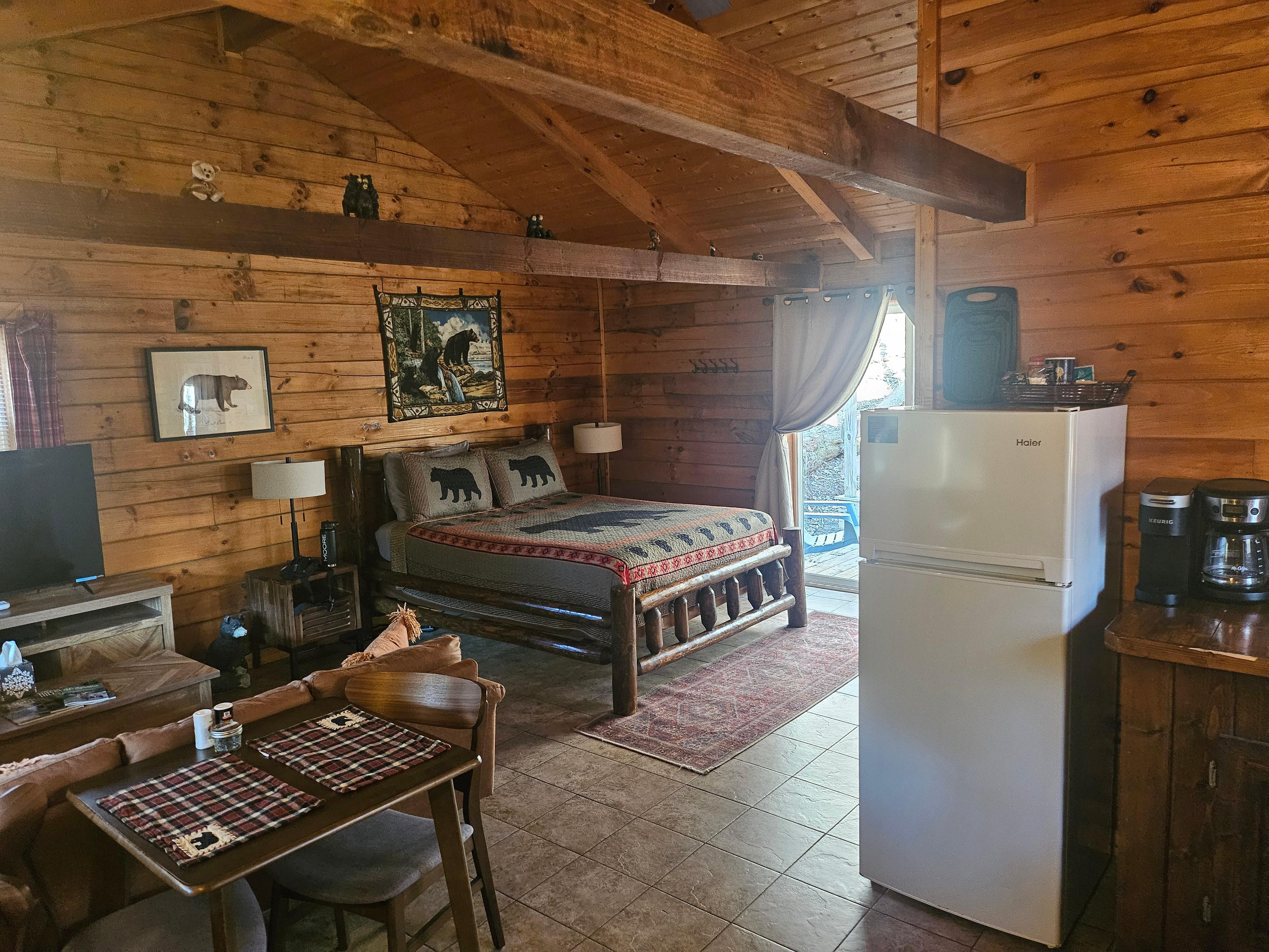 Bearadise Cove is a small cabin, perfect for solo travelers or couples. It is conveniently located close to hiking trails, which is a big plus for nature lovers. Bearadise Cove is pet-friendly, so you are welcome to bring your furry friend. Enjoy the relaxing hot tub after your hiking adventures or local activities. The gas grill and fire ring make for great BBQ evenings. And a queen bed is comfy enough for a good night's sleep. Bearadise Cove is perfect for a relaxing, outdoorsy getaway.