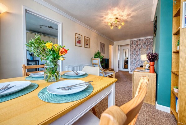 The kitchen is well-equipped with everything required for holiday dining including a fridge/ freezer, dishwasher and enough cutlery, crockery and glasses for everyone staying. There is also a washing machine available for guests to use.