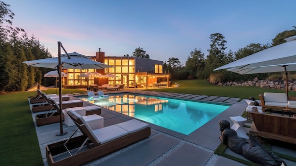 Modern, resort-style retreat in the heart of Shinnecock Hills, luxurious indoor-outdoor living