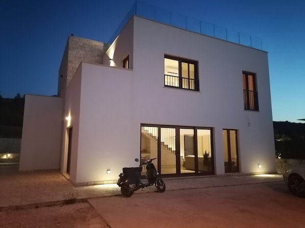 Die 2022 erbaute Villa ist von einer üppigen mediterranen Landschaft umgeben, geprägt von Olivenhainen und jahrhundertealten Steinmauern. Hier finden Sie Ruhe und Erholung, egal, ob Sie aktiv die Gegend erkunden oder entspannt die Seele baumeln lassen möchten.