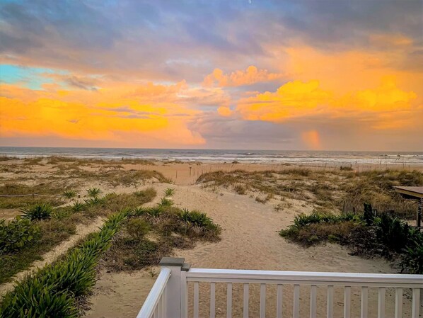 Wir haben Parkplätze für 8 Autos und liegen abseits der geschäftigen A1A. Wir haben keinen fahrenden Strand. Dies bedeutet freie Sicht und ist auch für Kinder sicherer. Der Strand ist breit, flach und sandig - keine Klippen oder Felsen wie die Strände nördlich und südlich von uns.