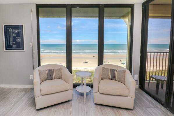 Sand Dollar 1-506 is a one-of-a-kind, gorgeously remodeled, 5th floor oceanfront "penthouse" unit with unparalleled ocean views. There is a large oceanfront balcony off the living room, and panoramic ocean views from the living room and Master bedroom.