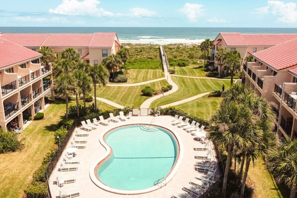 The Atlantic Ocean will be your view when you stay at Seaside Sunrise! There’s a boardwalk across the dunes to the beach where you can boogie board, beachcomb and build sandcastles. The community features a beautiful pool and you’re just a few short miles from historic St. Augustine.