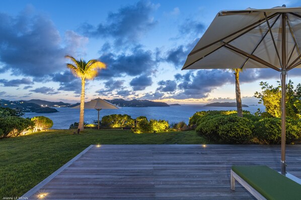 This 4 Bedroom Villa can be rented as a 1, 2 or 3 Bedroom Villa at special rates! Tainos is a pretty villa situated in Pointe Milou. It offers an incredible view of the ocean and the sunsets. It has been tastefully decorated in a very contemporary style. The large living room with American kitchen opens onto the outside, where there are spacious lounge areas and a magnificent infinity pool. The 4 bedrooms of this pleasant villa are warm and welcoming and have their own bathrooms. Two of the bathrooms are also equipped with a massage table. The fourth bedroom is situated in a separate bungalow and has a small private terrace. It is ideal for holidays with friends.