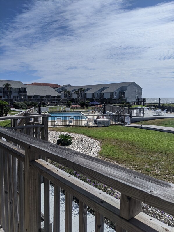 This is a great little condo! It is near the pool, and even though it's not beachfront, it has a great view of the ocean from the porch. Well stocked and clean. The owner was very responsive. We will definitely stay here again for a nice weekend getaway!