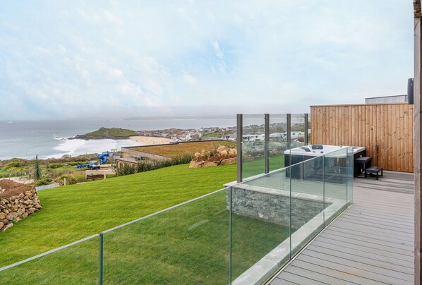 Hidden 19 – Coastal Hot Tub is an elevated apartment consisting of an open-plan living space with kitchen, dining area, and sitting area with Smart TV. The kitchen includes an oven, hob, microwave, fridge/freezer, washing machine, dishwasher, kettle, and toaster. There are two bedrooms with TVs: 1 x king-size with en-suite walk-in shower, basin, and WC, and 1 x twin (zip/link, can be super-king-size on request). There is a bathroom with bath, shower over, basin, and WC. Underfloor heating. WiFi. Fuel and power inc. in rent. Bed linen and towels inc. in rent. Travel cot and highchair available on request in advance of your stay. Off-road parking. Outside, there is a terrace with furniture and a hot tub. Two well-behaved dogs welcome. Sorry, no smoking. Shop 0.2 miles, pub 0.6 miles, river 1.3 miles, beach 0.3 miles. Make your Cornish escape one to remember at Hidden 19 – Coastal Hot Tub. Note: Guests have access to The Hidden Lounge, a shared wellness and relaxation space within the development. Facilities include a communal hot tub, sauna, steam room, gym, and foot spa, alongside a calm lounge area. Note: Additional Services bookable directly with the Concierge team - please contact them directly to make these arrangements. Note: This property has a refundable Good Housekeeping Bond of 250GBP, payable directly on site. Note: Free local chauffeur service operating within a two-mile radius, providing convenient access into St Ives and nearby beaches - available once checked in, operating from 7am until 9pm, including weekends. Note: E-bike hire is available, at an additional charge of 25GBP per day - Terms and conditions may apply. Note: The images for this property are a representation of how it looks - while the amenities are the same, the layout may differ slightly in person.
