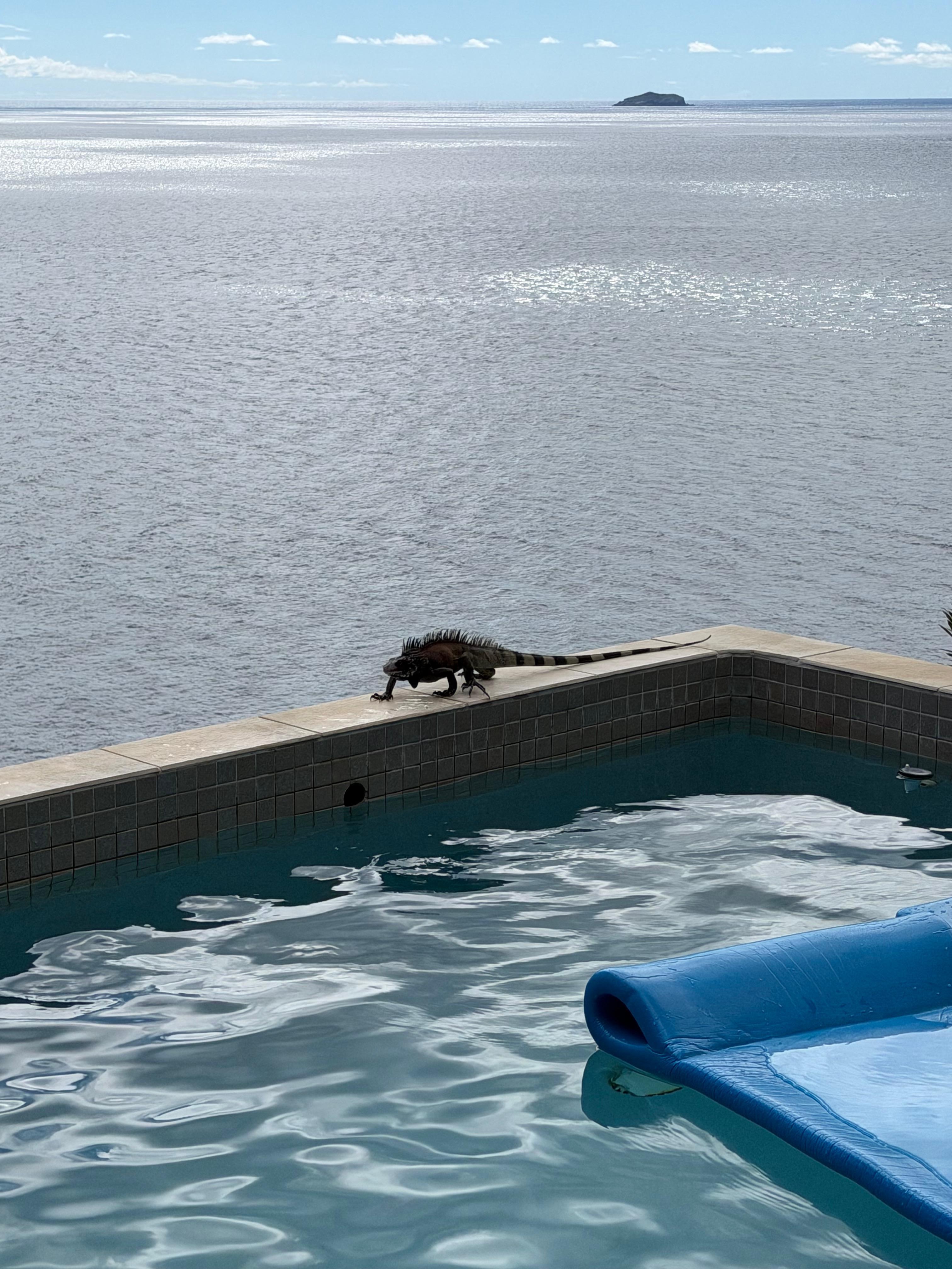 Dieses einzigartige Haus bietet eingezäunte Privatsphäre und verfügt dennoch über einen 1,6 km langen Rundweg auf asphaltierten Straßen, auf dem Sie Ihren Morgenkaffee genießen und sehen können, wie Leguane Ihren Weg kreuzen. Die Villa wird ständig durch eine leichte Brise gekühlt, die im Allgemeinen keine beißenden Insekten sichert.