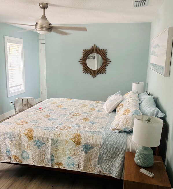 You will LOVE our fully remodeled (2025) beach cottage on the Gulf Coast of Florida! We are a one-minute walk to the beautiful sugar sand and blue waters on Sunset Beach in Treasure Island! The cottage is perfect for a family of 4-6 but is also well suited for two couples who want more space, privacy and amenities than a hotel could possibly offer. It is a FULLY FURNISHED 2-bedroom, 2 bathrooms, over 900 sq. ft. single-family home with a very rare completely enclosed private yard with a deck, patio seating for 6-8 people and barbecue. All the furniture is brand new including the mattresses. The Master bedroom features a king-size bed with TV, the second bedroom has queen-size bed with TV and both bedrooms have large closets for storage. Comfortable living room which features a nice space to lounge and an island which seats up to 4 people. FULLY EQUIPPED brand-new kitchen with all new cabinetry, countertops, and stainless-steel appliances. Dishes, utensils, cookware, bakeware, Keurig, and all appliances, large and small. We supply a beach trolley, beach chairs and an umbrella. Enjoy your morning coffee in the sunshine on our front porch, or on the deck in our beautifully treed yard!