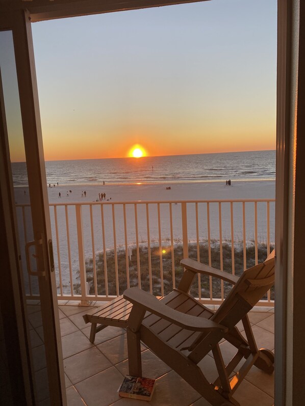 Enjoy beautiful ocean and beachfront views on 3 balconies or on the beach! Ocean sunsets, dolphins swimming or beautiful boats sailing by can be seen right from the balconies or on the beautiful sugar sand of exclusive North Clearwater beach!