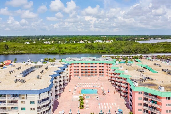 Private Balcony - Ocean views and pool views of the turquoise Gulf waters accessible from the living room or primary bedroom.