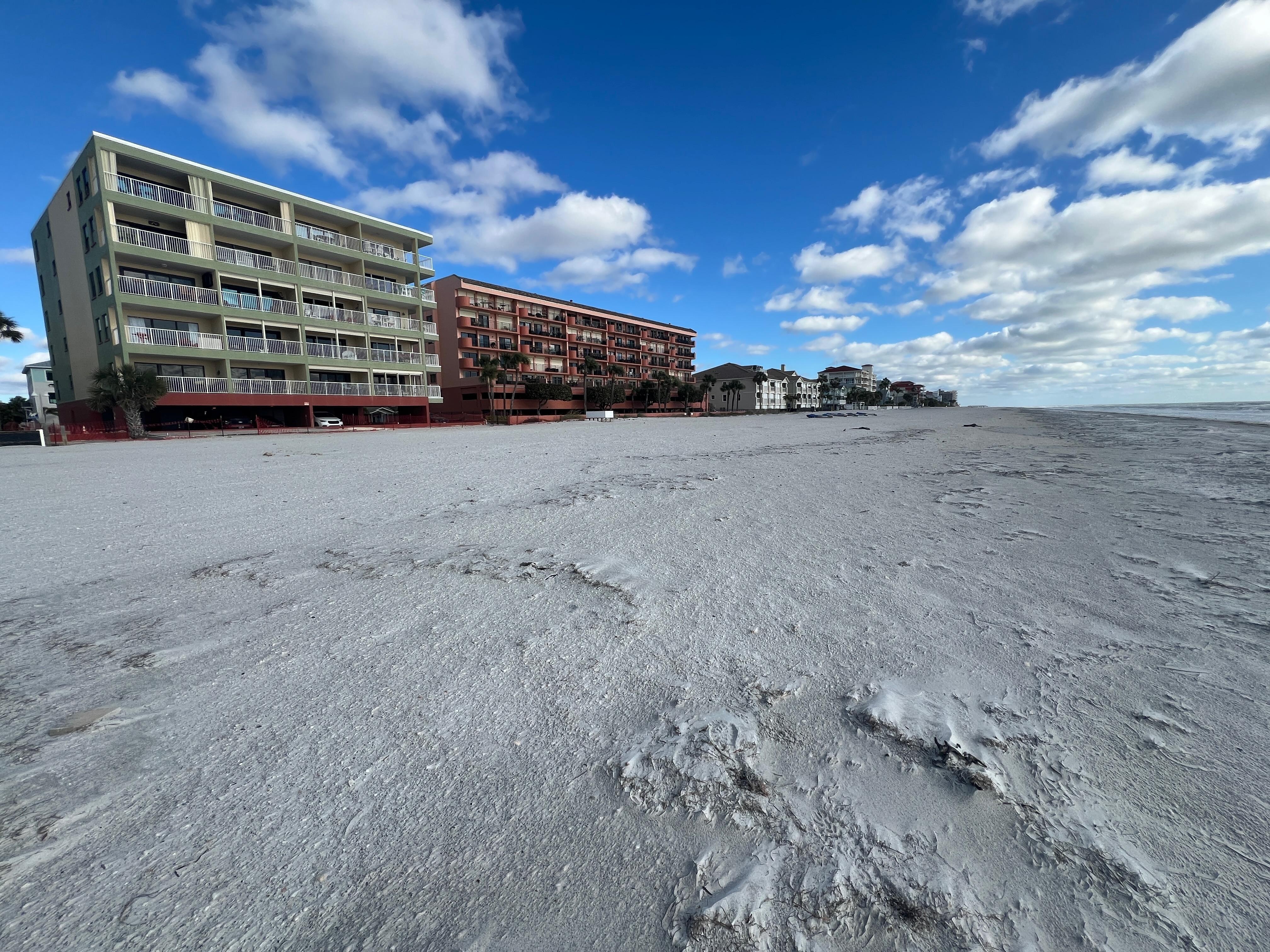 Incredible views from this top-floor corner unit directly on the beach in Indian Shores! Wrap-around balcony to see the sunrise & sunset. Inside, 1275 sq. feet with 2 king beds, 2 full baths, open kitchen/dining/living area and... you can see the beach from nearly every room!
