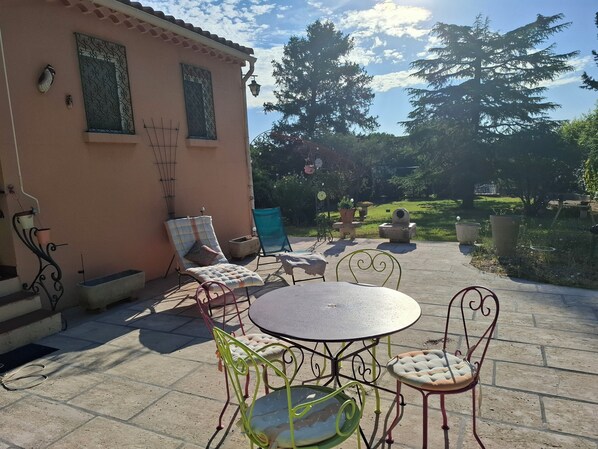 Très belle villa qui offre le luxe de l'espace dans un cadre paisible et reposant. Nous avons beaucoup apprécié pouvoir laisser la voiture à la villa durant notre séjour, le centre ville est vraiment à deux pas accessible par un joli petit chemin qui longe un cours d'eau. Les sentiers de randonnées sont également accessibles directement depuis la villa, très agréable !Nous avons été très bien accueillis par Sylvie, dans une maison très propre et bien entretenue. Tout est pensé pour que l'on s'y sente bien. On se croirait vraiment comme à la maison. Nous reviendrons avec grand plaisir !