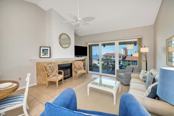 Welcome to 478 King & Prince Villa! Located steps from the beach and directly adjacent to the Resort Hotel. This 2025 renovated 2 bedroom, 2 bath Ocean Front Villa is perched on the top floor of the King & Prince North Villas. Representing Costal Luxury, the Villa offers that soothing tranquil feeling that you expect and deserve on vacation. The living area is spacious and airy featuring vaulted ceilings and comfortable furniture meant for relaxing in while you overlook the breathtaking Ocean Views, watch your favorite TV programs or simply enjoy family time after a full day at the beach. The private balcony overlooking the Beach and Pool is what our guests refer to as their “favorite spot” and we agree as the Beach and Sunsets viewed from there are simply Awesome! The Master Ensuite is arranged with a King-size bed with the Guest room having 1 Full-size and 1 Twin XL size beds.