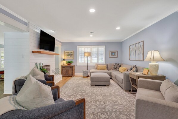 Spanning over 2,150 square feet, this single-level home features three beautifully appointed bedrooms, accommodating up to seven guests. The primary bedroom boasts a luxurious king-sized bed, while the two guest bedrooms offer a queen-sized bed and a queen-sized bed with a bunk bed, perfect for kids or extra guests. With two full bathrooms, everyone will have ample space to unwind after a day of exploring.