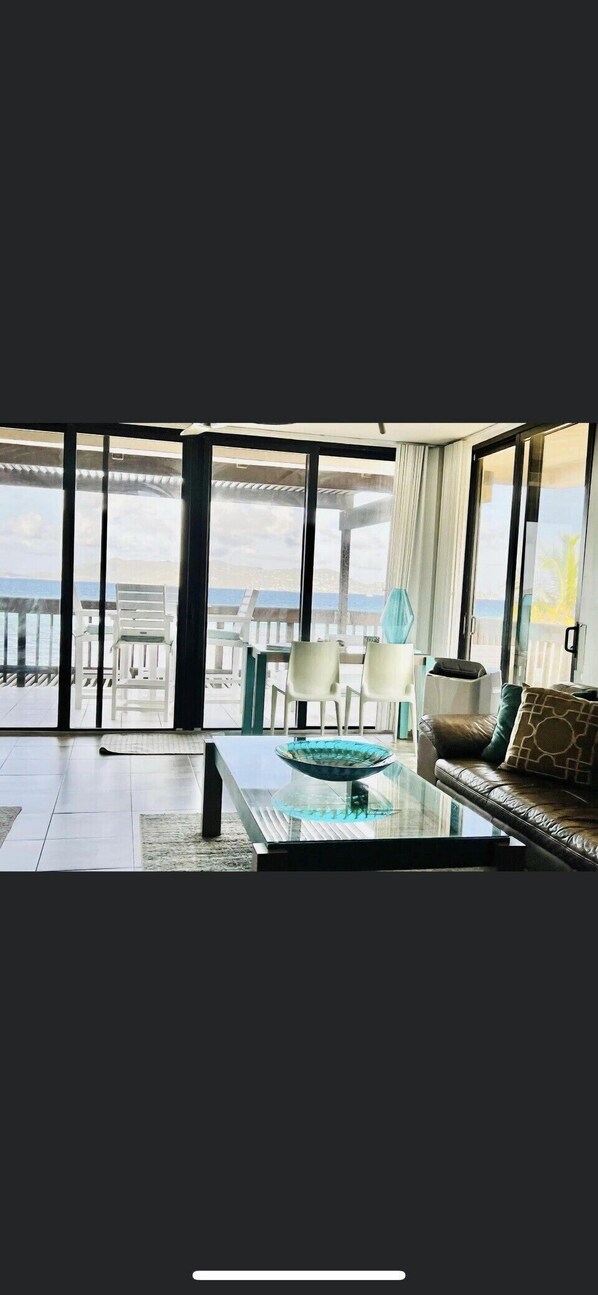 Glass House on the Sea ist eine spektakuläre, luxuriöse, große Eckwohnung am Strand mit einem sauberen, modernen Design. Das Glass House ist die einzige Einheit im Sapphire Beach Resort ohne ein weiteres Gebäude direkt nebenan und bietet Ihnen unübertroffene Privatsphäre. Der extra große umlaufende Balkon mit einem zusätzlichen Satz Schiebetüren und einem Fenster am Bett bietet mehr Platz und Licht. Ihr vorderer Balkon ist nur 20 Schritte vom Meer entfernt und bietet einen Blick auf das Archipel der Jungferninseln, während der seitliche Balkon einen Blick auf unsere malerische Marina bietet. Glass House ist perfekt für Paare, Hochzeitsreisende und Gäste, die Privatsphäre und gehobene Unterbringung schätzen. In Glass House weht eine konstante Brise aus dem Meer, sodass Sie das Gerät mit nur Wind kühlen können - öffnen Sie einfach die Schieberegler! Die zweite Etage bietet eine bessere Aussicht und die Privatsphäre von jedem, der am Strand spazieren geht, sowie die Sicherheit, bei geöffneten Schiebetüren schlafen zu können, wenn Sie dies der Klimaanlage vorziehen. Sie können einschlafen, wenn Sie die Wellen am Strand hören und erwachen zu dem schönsten Sonnenaufgang, den Sie je mit St. gesehen haben. John und die britischen Jungferninseln, die Ihre Ansicht gestalten. Und am Morgen, wenn Sie Ihren Kaffee auf Ihrem Balkon genießen, fühlen Sie sich wie auf Ihrer eigenen Superyacht auf der Karibik. Sie könnten nicht näher sein - Sie können die Meeresluft riechen und die Wellen am Strand landen hören. Und da die Sonne auf der rechten Seite des Gebäudes umläuft, können Sie sich dem späten Nachmittagslicht hingeben, lange nachdem andere Geräte ihr Sonnenlicht verloren haben. Das bedeutet einen längeren Tag zum Sonnenbaden in der Chaiselongue oder um Ihren Cocktail in einem bequemen Sessel mit Blick auf den Strand zu genießen.