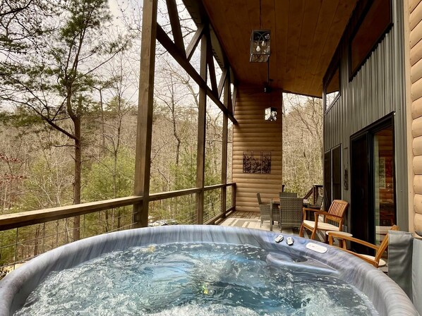 This cabin was the perfect place for a quick getaway for our family of 4. The porch and hot tub were a great place to spend the mornings, and wind down after a day on the trails. The cabin had everything you would need. Quick access to trails, and an overall beautiful location. We will be back!