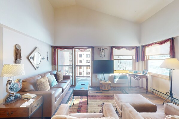 There is no better place to take an unforgettable getaway to Steamboat Springs! Delight yourself with magical mountain views or watch the skiers and snowboarders fly down the mountain from the furnished balcony of this fantastic ski-in/out condo sitting within walking distance of the lifts. Perfect for a couples getaway or small family vacation, there is plenty of room to spread out and feel right at home. After long days of shredding powder or lounging by the pool in warmer months, grab a good book, and sit next to the fireplace as smells of a delicious meal waft in from the full kitchen. When the night comes to a close, kick your feet up on the plush sofa and gather with everyone in the living room for a movie night on the TV! This mountain gem offers guests the convenience of having partial A/C in the living room.