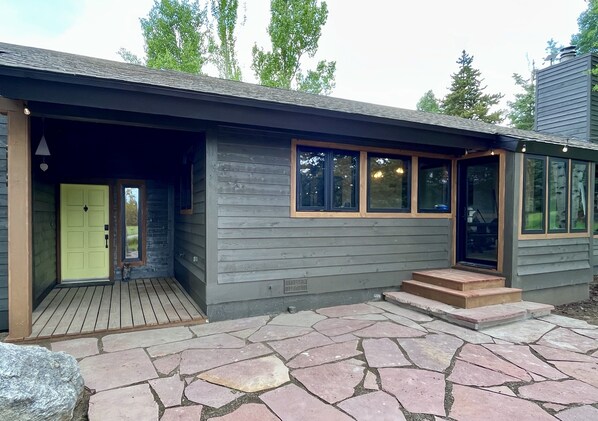 The exterior of the half-acre property features a large covered front porch perfect for shedding winter gear, and a brand new expansive flagstone patio perfect for enjoying Steamboats beautiful summer nights.
