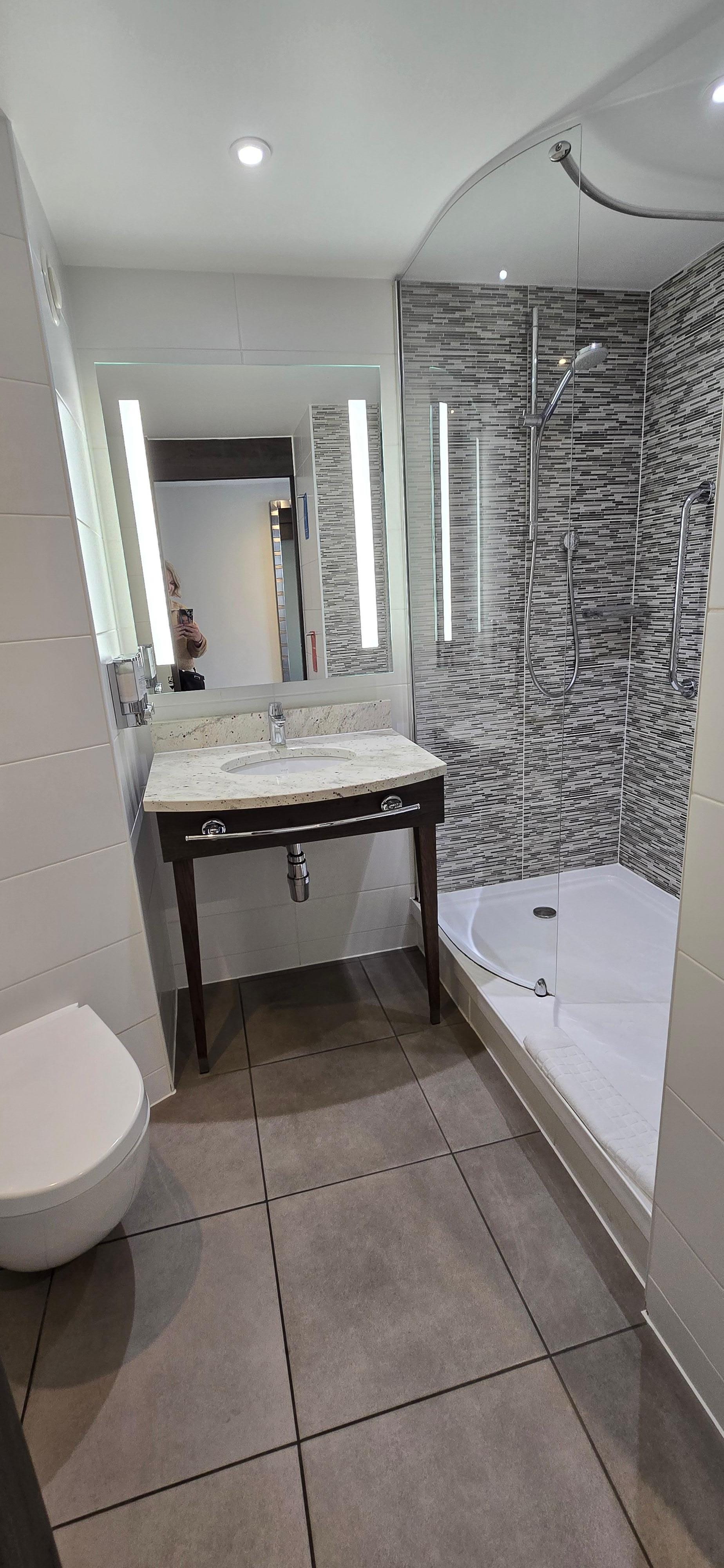 Da man uns ein für Behinderte ausgestattetes Zimmer gegeben hatte, obwohl wir dies nicht gebraucht hätten, war die Dusche enger als normal und das WC ohne Deckel, was hygienisch bedenklich ist.