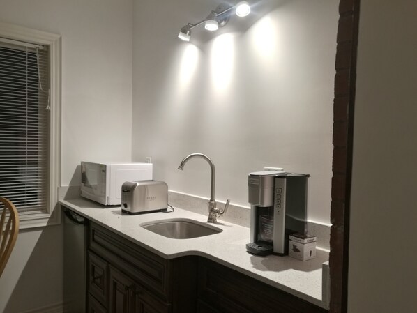 Kostenloses K-Cup-Café, Mikrowelle, Toster, Barfridger (4. 4 Cub) und heißes oder kaltes Trinkwasser sind rund um die Uhr an der Granit-Thekenbar des Wohnzimmergastes erhältlich.