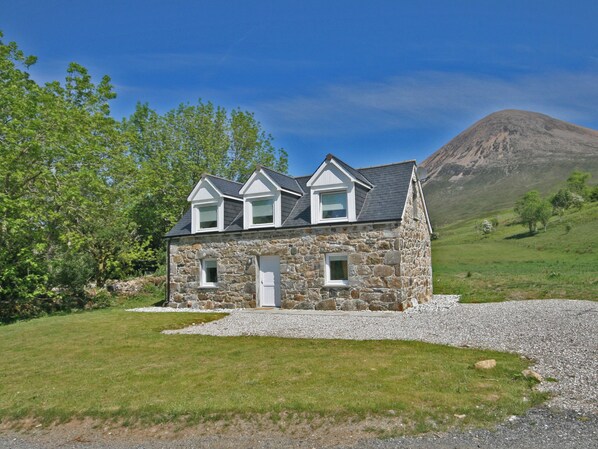 Separate Toilet.. Oil central heating, electricity, bed linen, towels and Wi-Fi included.. 11-acres of grounds with sitting-out area, garden furniture and BBQ. Private parking for 2 cars. No smoking.. Tigh Sheoc (Gaelic for House of Jock) is an exquisite stone cottage set amidst stunning scenery. Originally a Suffolk stone barn (rare on the Isle of Skye) it has been perfectly converted into the most charming cottage that combines the very best of modern living with an olde worlde ambience. The cottage is set in its own 11 acre grounds that lead directly onto the Red Hills. There is a pretty cottage lounge on the ground floor, together with a modern kitchen and bathroom. The two pretty bedrooms on the first floor look out across the amazing landscapes.