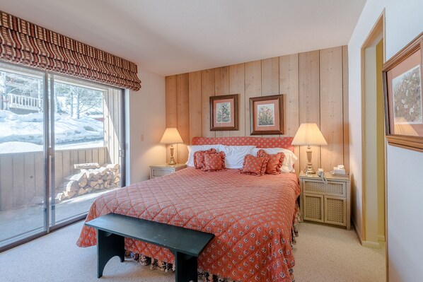 Diese ebenerdige Eckkondominium bietet viel Schlafraum und liegt in der Nähe der Warm Springs Lifte.