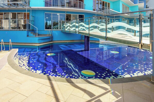 - Relax in the 60m pool, a heated pool and a wading area for little one, or make use fitness room.