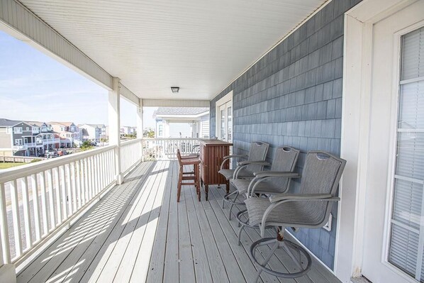 Inside, the dining table comfortably seats 10, making it ideal for shared meals and gatherings. The home features plenty of outdoor furniture, ample parking, a charcoal grill, enclosed outdoor shower with hot and cold water, and guest storage. TVs and ceiling fans are located in all bedrooms, with three bedrooms offering beautiful ocean views and the fourth providing a peaceful marsh view. Convenient beach access is located just steps away between 883 & 885 OBW.