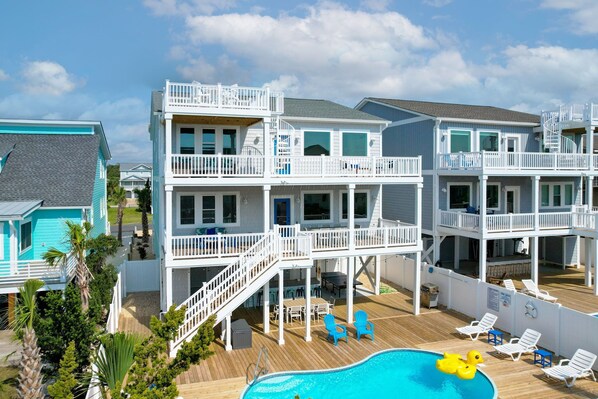 Outside, relax in the private pool or catch the game on the outdoor TV while grilling up your favorites on the propane grill. When it's time to hit the beach, we've got you covered with all the essentials, including chairs, umbrellas, and toys, making your beach days effortless and fun.