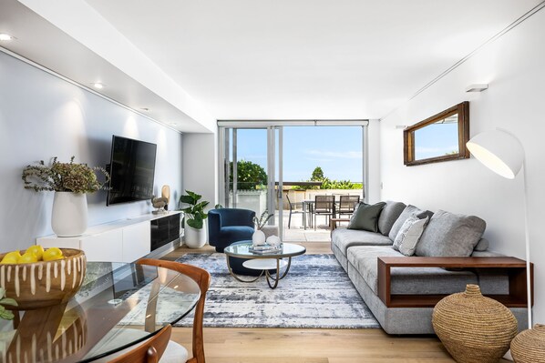 Enjoy a front row seat in this vibrant beachside community located a few steps away from one of the world’s premiere beaches. This light filled apartment boasts open plan living with ocean views and the gentle sea breeze. The spacious kitchen with state-of-the-art appliances makes cooking a pleasure—if you choose to do so. Complete with a large terrace perfect for alfresco dining or just gaze out to the blue horizon and enjoy the sound of the waves.