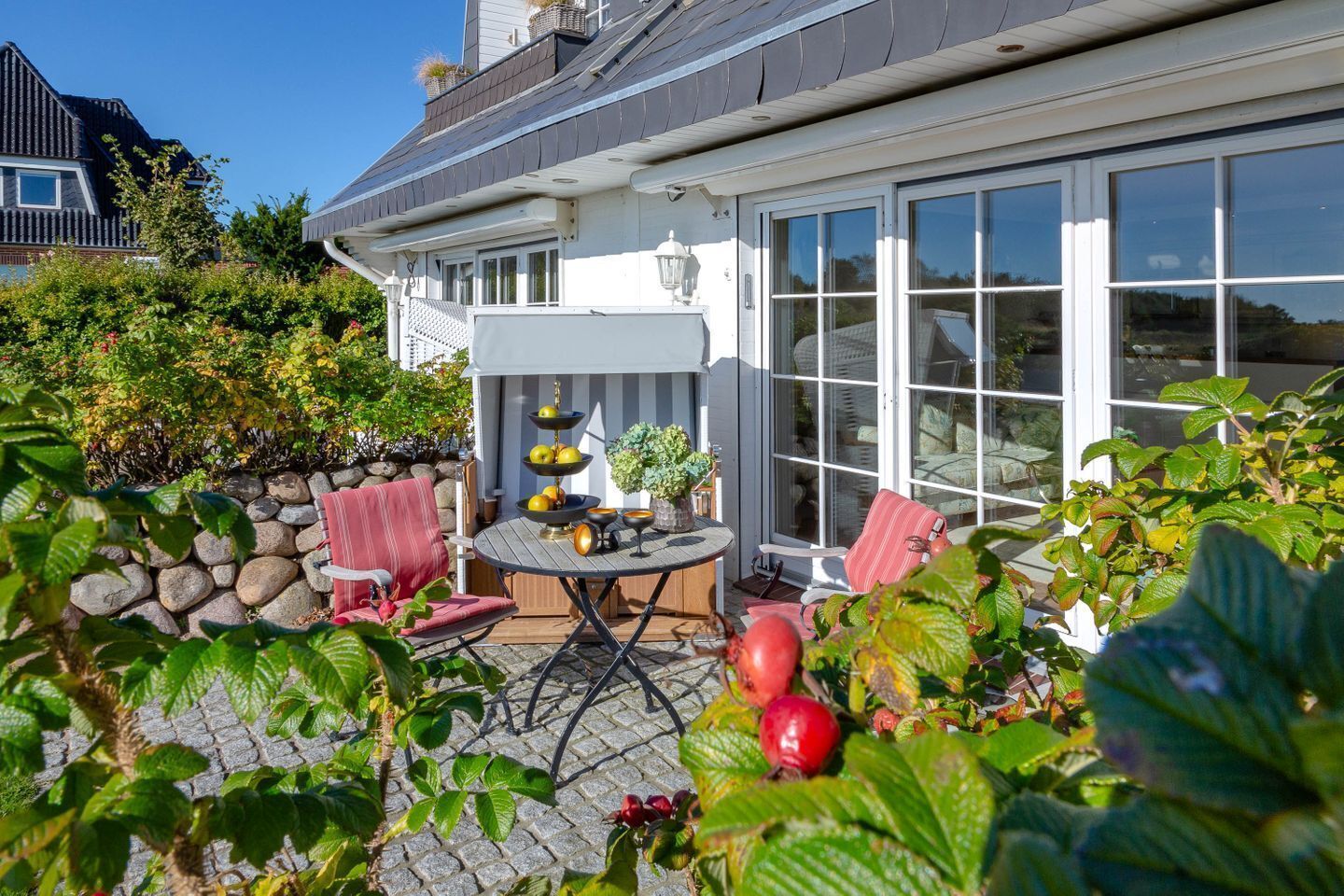 WesterlandHaus Belvedere- Direkt hinter dem Dünenkamm, in kaum zu überbietender Wohnlage. Nur 50 Meter bis zum Strandübergang, 100 Meter bis zur Friedrichstraße, also in allerbester Lage. Großzügiges Wohnen für bis zu 4 Personen, Balkon und Stellplatz- hier wird es Ihnen an nichts fehlen. Diese großzügige Ferienwohnung mit ca. 70 Quadratmeter bietet ausreichend Platz für eine Belegung mit bis zu 4 Personen. Neben der voll ausgestatteten Küche ( Backofen, Geschirrspüler, Kaffeemaschine , Toaster, Nespresso Kapsel Maschine) und dem Wohnbereich mit Essplatz, TV, Stauflächen und dem Ostbalkon finden Sie hier ein moderne Sitzecke mit großzügigen Schlafsofa für 2 Personen. Im Oberschoss befindet sich ein Schlafzimmer mit King Size Bett sowie ein Vollbad mit Duschfunktion. Im Gäste WC steht Ihnen eine Waschmaschine zur Verfügung. Einen Wäscheständer und Bügelbrett sind ebenfalls vorhanden. Diese Wohnung hat W-LAN und zu Ihrer Unterhaltung jetzt auch Magenta TV. Falls Sie mit einer großen Familie anreisen: Dieses Appartement lässt dich durch eine Verbindungstür mit dem Nachbarappartement Nr. 33 verbinden. Hier finden Sie noch einmal 5 Schlafplätze, sowie einen Balkon zur Südseite mit Blick auf die Dünen und das Meer. Den Bewohnern dieser Wohnung steht ein PKW Stellplatz in der Tiefgarage zur Verfügung ( Einfahrtshöhe bis zu 190 cm). Die unten aufgeführten Preise beziehen sich auf eine 2er Belegung. Zusätzliche Personen sind bis zu einer 4er Belegung möglich. Hierzu berechnen wir pro Person und Tag je € 10,- zusätzlich. Das Nachbarappartement ist mit bis zu 5 Personen zu belegen ( Objekt Nr. 179). HINWEIS / AKTUELL Dezember 2024:Das OG in dieser Wohnung ist im Dezember 2024 erneuert worden (Wände, Boden und Möbel). Neue Fotos folgen kurzfristig. Freuen Sie sich auf das schöne neue Wohnambiente im modernsten Wohnstil.