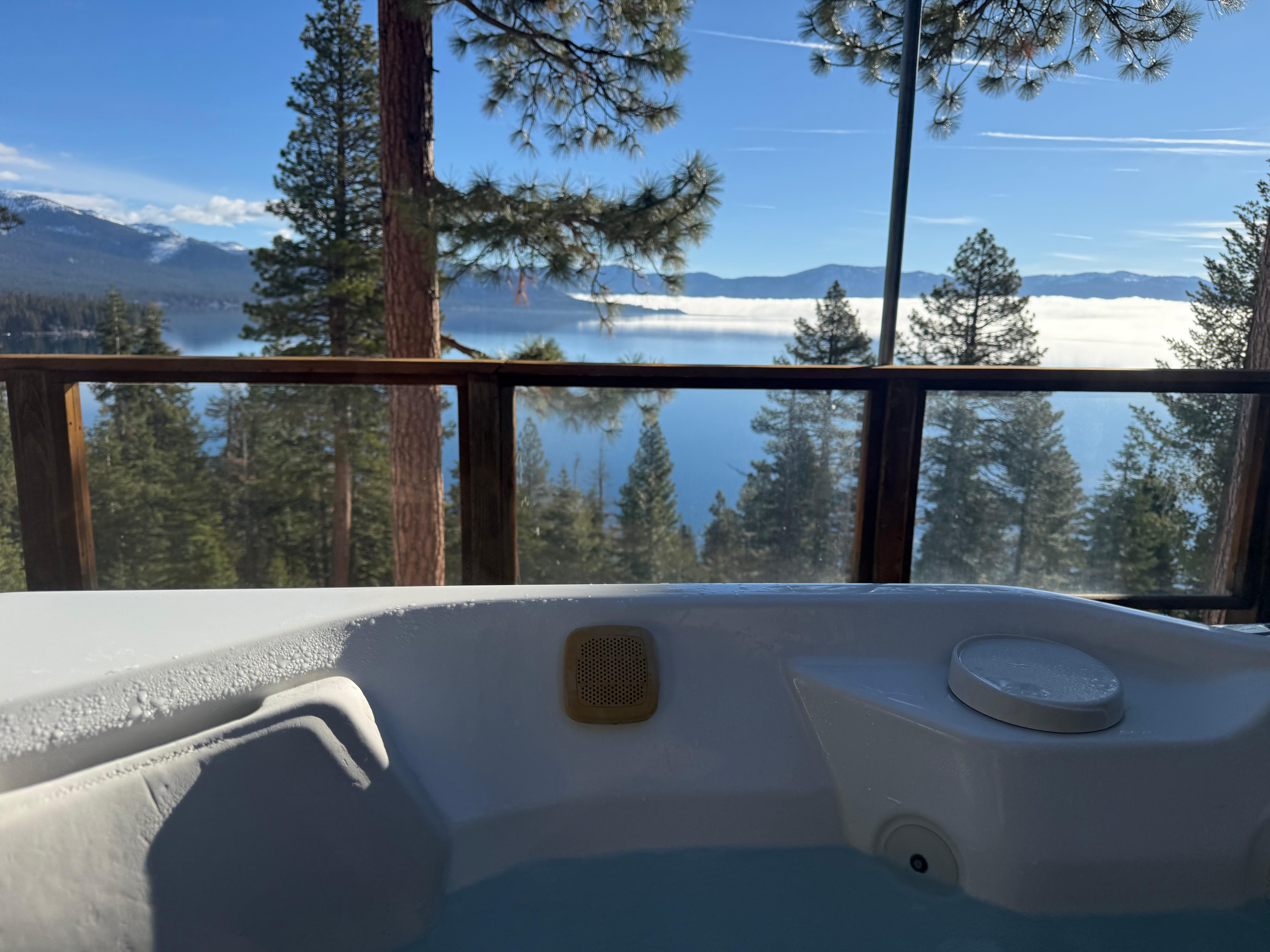 Genießen Sie einen entspannten Aufenthalt auf einer Klippe über dem Lake Tahoe. Eingebettet in einer Mulde aus dem vorherrschenden Wind, sieht jedes Zimmer in diesem Haus über den See, mit Blick auf Crystal Bay Point und entlang der wunderschönen Ostküste. Lassen Sie sich von jeder Stimmung erstaunt der See zu zeigen hat, von der Linie Sonne auf der östlichen Sierra bis hin zu spektakulären Vollmondnächten steigt, die aus dem privaten Whirlpool auf dem Deck genossen werden kann. Jedes Zimmer ist geschmackvoll eingerichtet und die Betten haben eine hohe Fadenzahl Bettwäsche, Daunendecken und vielen weichen Kissen.