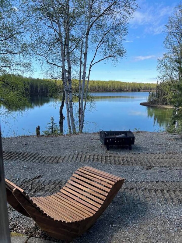 We had a lovely stay!The home was spotless, all new. The kitchen is extremely well appointed with cookware, silverware, coffee and tea as well as everything needed to make it.The bed was very comfortable, the closet huge. There were room darkening blinds that fit the windows well. Plenty of warm blankets.We really appreciated the luggage racks - most places don't provide them.Bikes, grill, fishing gear and bear spray were available, as were some extras in the bathroom - toothbrushes/paste.The location on the lake was so relaxing. We built a fire in the evenings and just enjoyed. Given the weather (it rained most of the time) we did not go out on the lake - maybe next time!Our host was available for any questions we had before and during our stay, which was very appreciated!A couple of small improvements would be a bench (inside or outside) to take our shoes off and a tray to put them in if they are really messy, and a coat rack. A washer and dryer would make it perfect!But even without these things we would definitely stay here again and again, thank you for having us!