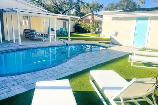 IMPORTANT TO NOTE: This home has a detached 1/1 guest house located on the property, which may also be occupied by guests during your stay. The backyard and pool area is a shared space. You are welcome to inquire with us to see if the 1/1 is available for you to rent with the home for complete privacy during your stay. If bringing pets, they must be leashed at all times.