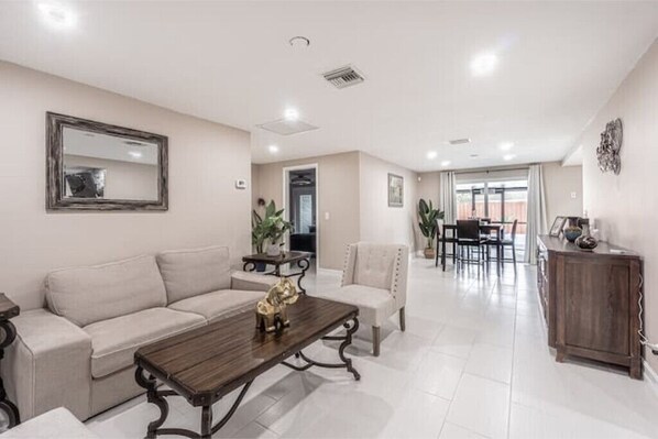 Relax with the whole family at this peaceful place to stay. Enjoy sunny afternoon in the pool with plenty of space or a cozy night by the fireplace in our living area. In the heart of the city with shopping mall and restaurants close by. Only 20 minutes away from downtown and about 30 minutes away from the beach. Come enjoy the cool breeze of the bay. Equipped with tankless water heater and a water purification system for the entire home. The space The house has three bedrooms including one master bedroom with a king size bed, en-suite bathroom, and access to the pool. The second bedroom has a queen size bed and includes a desk for those days you need to get a little work in. The third bedroom has two twin size beds, this is a trundle bed which means the second bed is pulled out from the bottom. All bedrooms have Roku TV’s and fans for your comfort. There is also a two living room spaces one is equipped with an electric fireplace and TV, the other is more of a sitting are where guests can sit and sit together and socialize. The kitchen is equipped with stainless steel appliances, kitchen utensils, and all of the cooking tools you need to whip up something delicious. There’s a dining table with seating for four. The backyard comes complete with a screened in sitting area, barbecue, pool and a covered area, complete with seating, by the pool for those extra sunny days. Other things to note Rules 1. No smoking in the unit smoking will result in a $500 fine 2. Trash must be taken out to the garbage cans 3. The noise level must be appropriate and not disturb the neighbors. 4. No food inside of the pool. 5. If you are having a get together that has been previously approved by your host we ask that decorations be put up with tape to avoid damaging the walls and we strictly prohibit the use of confetti. 6. No pets allowed, if pets are brought to the property you will be fined $500 7. Pictures and videos are taken before each checkin to ensure cleanliness of property, we will not be issuing any refunds under the excuse of the property not being cleaned as it is sanitized before each guest and proof has been documented. 8. Dishes must be cleared of all food before being placed in dishwasher. 9. If there is a problem with someone in the home resulting in blood, vomit, fecal matter, or urine being soiled/ cleaned up with the property’s towels/ linens/ furniture we must be informed and the contaminated items should be disposed of properly, if these items are left unattended in the home there will be a $500 fine as this is a biohazard and we are not responsible for coming in contact with these items.