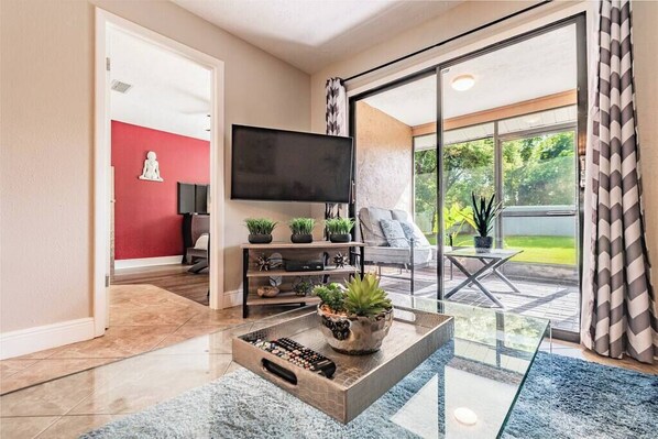 This apartment was a great place to stay for our case. It was in a convenient location close to Starbucks, Publix, gas stations, and a main road. It was also not far from downtown Tampa and the Buccs stadium. Note that a smart phone is needed to access the unit.