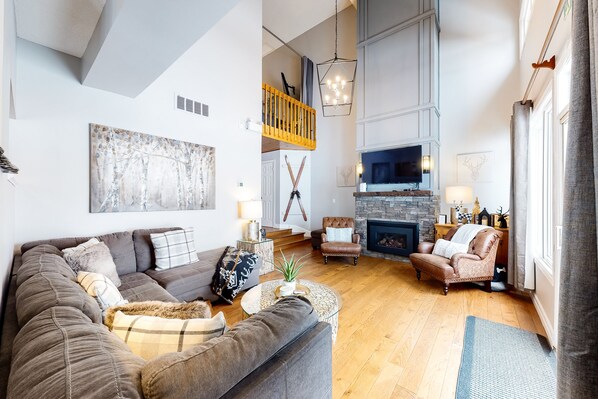 This beautifully updated condo in Wintergreen Resort makes for the perfect getaway no matter what time of year you visit. Soaring ceilings, modern decor make and large picture windows make for a bright, stylish interior. If the weather permits, start the day on your patio with a cup of coffee. When you start gettin hungry, the well-equipped kitchen offers a full suite of stainless steel appliances and gleaming white cabinetry and countertops. Eat together at the large dining table or pull up a barstool to keep it casual.