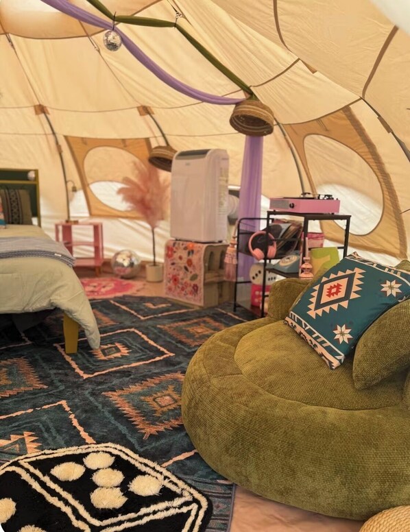 Alle Gästezimmer im Dolly’s Disco Yurt, fluffy, sheep, llamas, and shaggy cows überzeugen durch Komforts wie beispielsweise eine Klimaanlage.