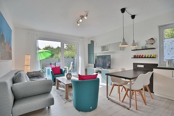 In dem stilvollen Appartement Oeynhausen mit der großen Terrasse können Sie entspannte Ostseestunden genießen.