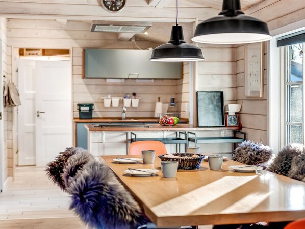 Dieses Ferienhaus am See bietet eine Küche und einen Kamin